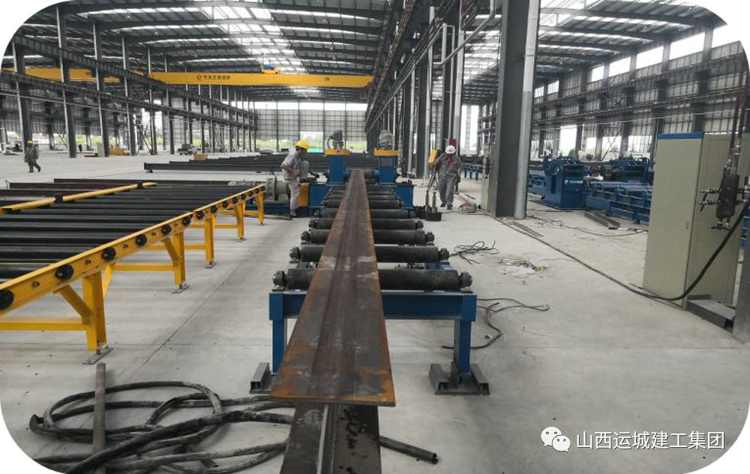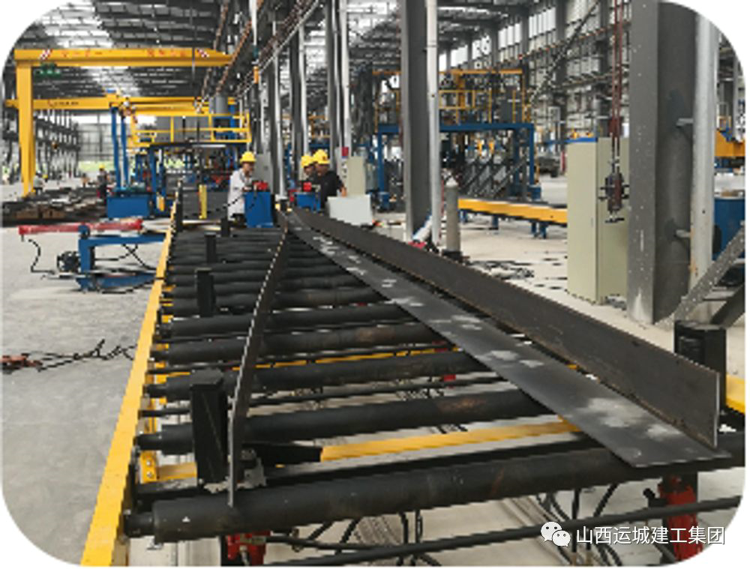 切割好的板材通過組立機兩端點焊初步成型為H型鋼,由輥軸輸送準備進入下道工序---組焊。