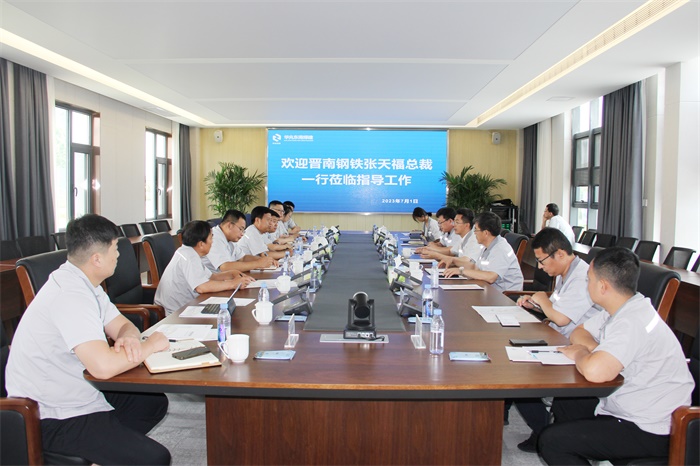 7月1日上午,山西晉南鋼鐵集團總裁張?zhí)旄ьI工程項目處、銷售處、財務處等部門負責人來到華兆東南綠建考察交流。華兆東南綠建總經(jīng)理鐘永來及領導班子成員等陪同考察。