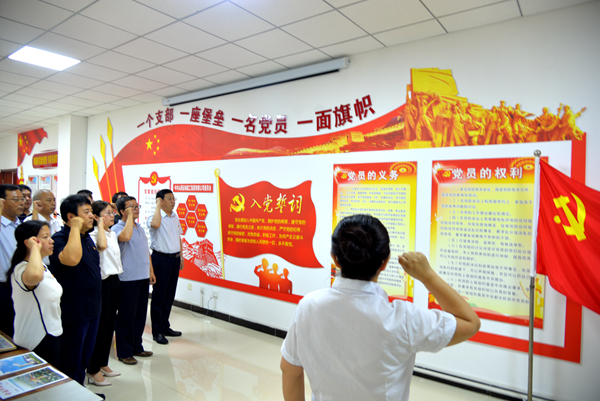 當(dāng)日,運(yùn)城市工商聯(lián)黨支部黨員來到運(yùn)城建工,參觀了公司黨員活動室并查閱了黨建資料,華兆控股董事長、運(yùn)城建工黨委書記牛正澤向大家介紹了近幾年公司黨建工作開展情況。全體黨員在鮮紅黨旗下,高舉右拳,重溫入黨誓詞,鏗鏘有力的誓詞回響在活動室中,表達(dá)了大家對黨的事業(yè)奮斗終身的決心。